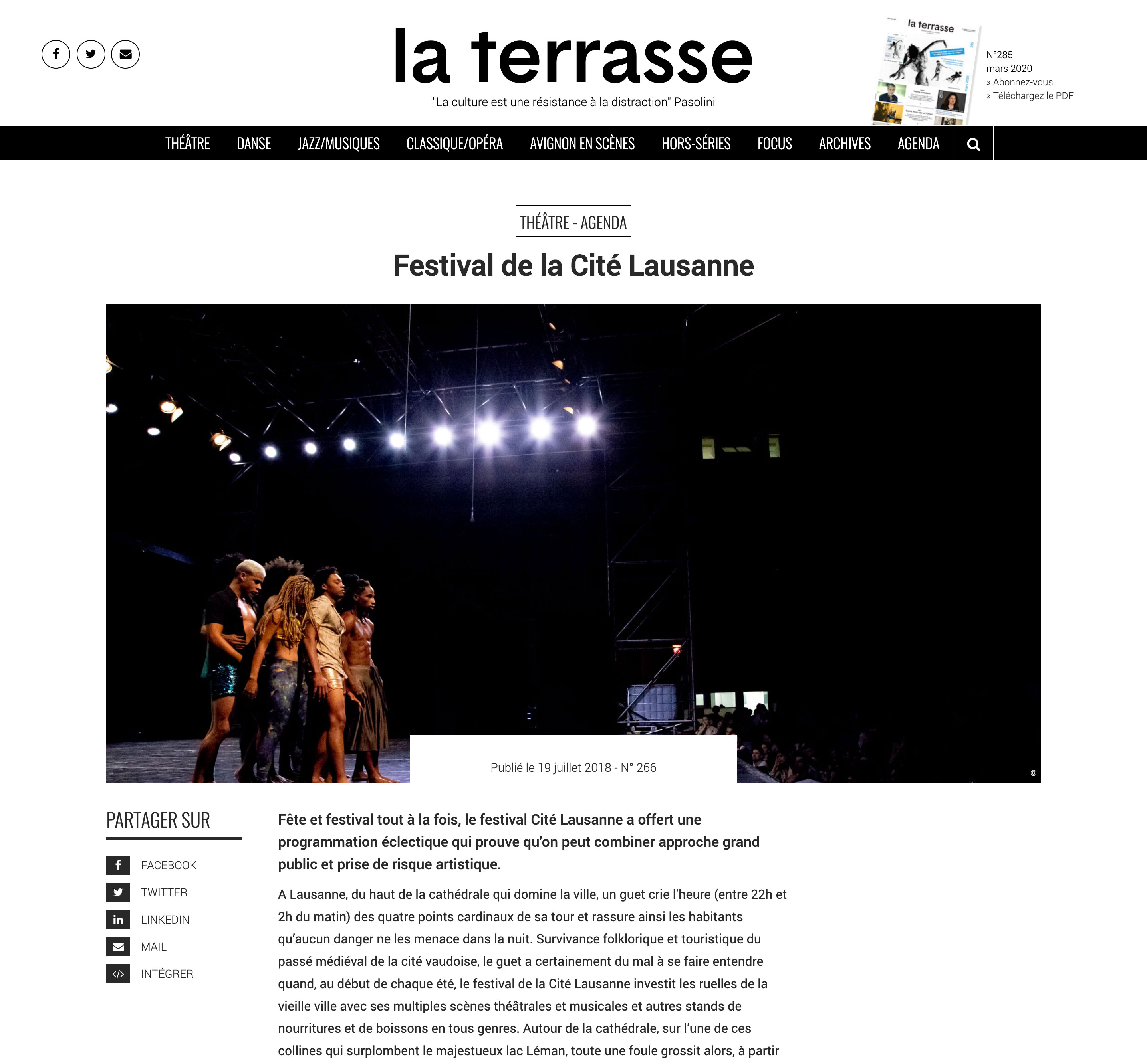 Festival Panorama, MIT sp, Bienal SESC de Dança, FETEAG, FIAC (Bahia), Palco Giratório SESC, Festival Dança Gamboa, Bienal de Dança do Ceará e Trisca Festival