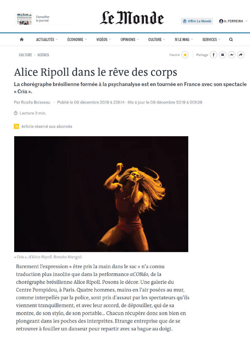 Coreógrafa, intérprete e diretora de movimento para teatro e cinema, Alice nasceu no Rio de Janeiro.